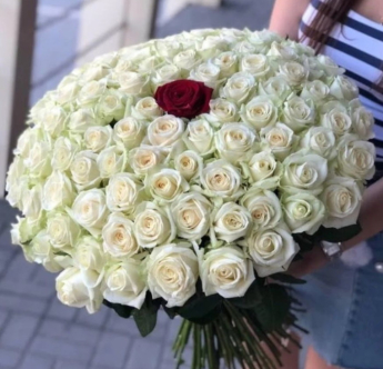 100 белых роз и 1 красная